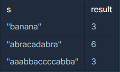 S = "banana"인 경우 ba-na-na와 같이 분해됩니다.