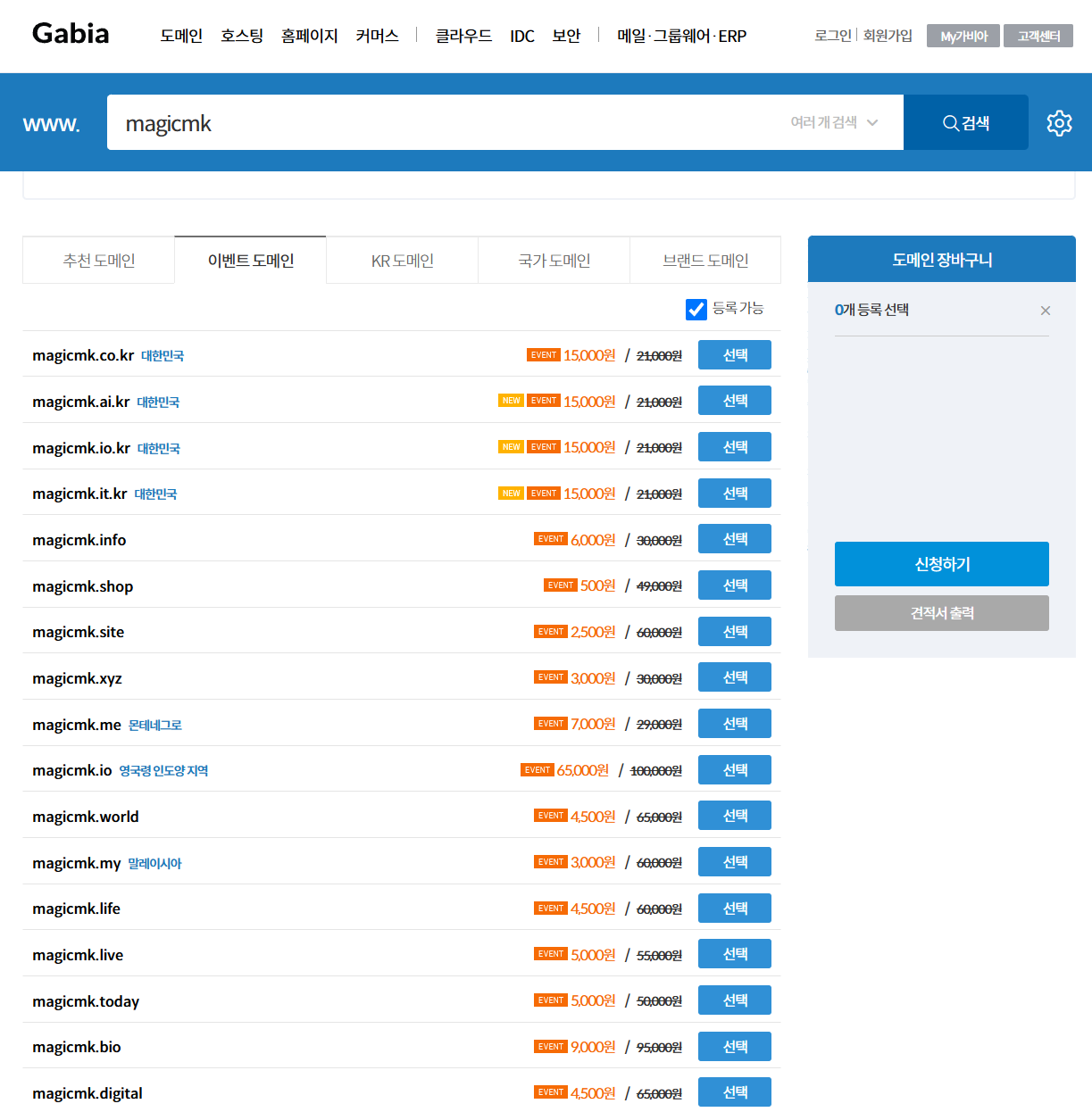 위 사진처럼 저렴한 도메인도 많다.