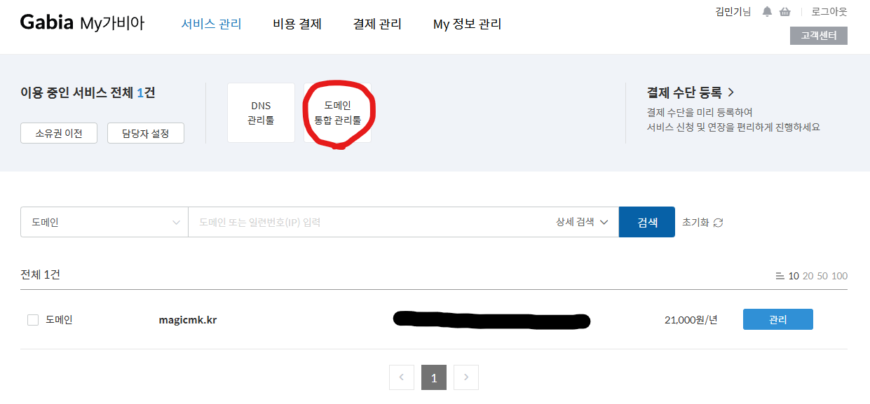 본인 같은 경우는 가비아에서 도메인을 구매하였다.