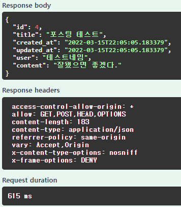 또한 게시물의 작성 시간과 수정시간을 알기 위하여 craeted_at은 auto_now_add를 설정하고, updated_at에는 auto_now를 설정하였습니다.