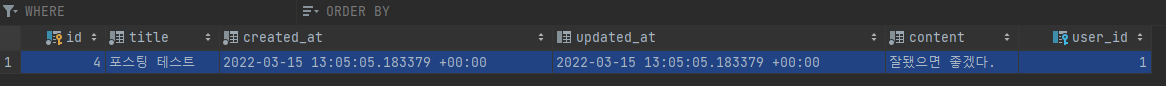 DB에도 정상적으로 데이터가 들어가는 것을 확인했습니다. 그럼 이상으로 포스팅 끝.