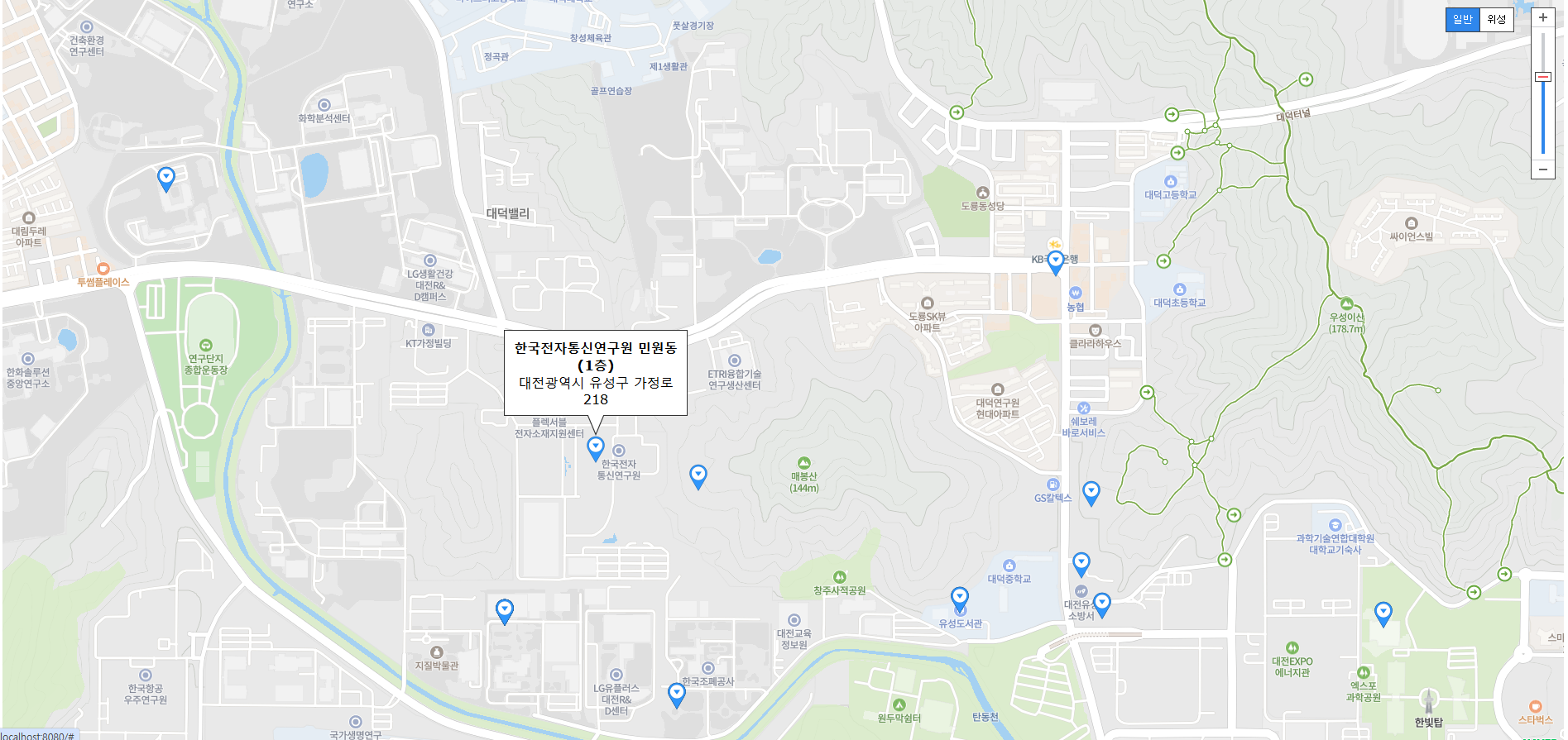 로컬에서 테스트를 해보면 현재 위치를 보여주며 화장실 위치가 마킹되는 것을 알 수 있다.