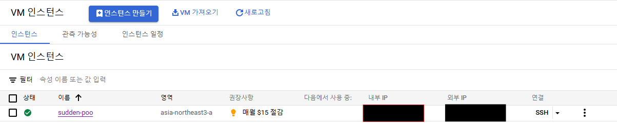 이제 만들기를 클릭하면 인스턴스가 생성된다.