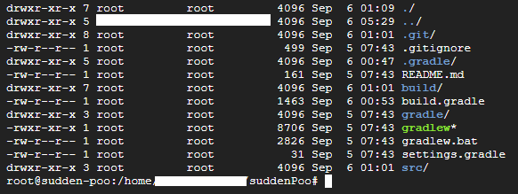 기본적으로 gradlew는 필자와 다르게 하얀색으로 표시될 것이다. 해당 파일은 chmod를 통해 권한을 변경해줘야 한다.