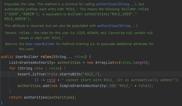 .authorities(new SimpleGrantedAuthority(member.getRole().toString()))