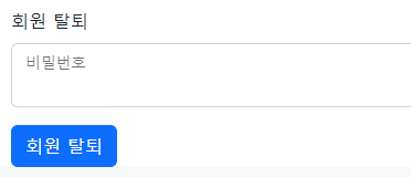 위처럼 회원 탈퇴 페이지로 들어가면 비밀번호를 입력한 뒤 탈퇴를 할 수 있도록 만들었다.