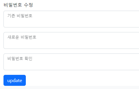 비밀번호 변경은 현재 비밀번호를 입력하고 변경할 비밀번호를 두 번 입력하는 형식으로 작성하였다.