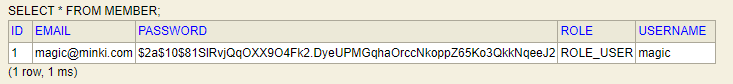 현재 member entity에 email은 pk로 지정되어 있고 나머지 컬럼은 username과 password 밖에 없어서