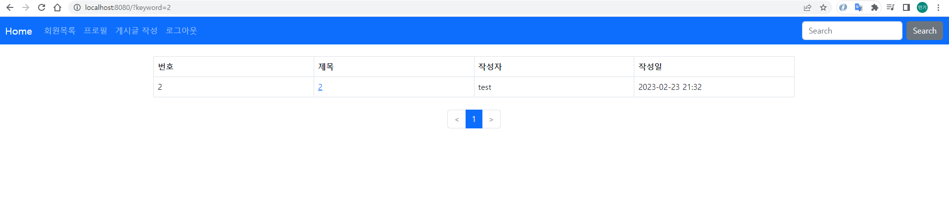 검색은 기존 Home 화면에서 keyword만 인자로 추가하여 새로운 boardList를 받는 형식으로 구현했다.